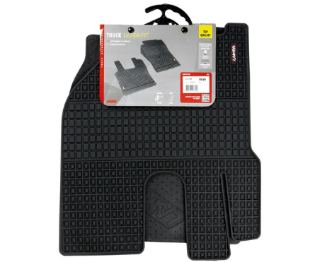 Kakovostni gumijasti tepihi po meri so zasnovani za popolno prileganje kabinam modelov Volvo FH različnih generacij. Tepihi so izdelani iz trpežne eco gume, ki prenese intenzivno uporabo in zahtevne razmere. Odlična odpornost proti vodi, blatu, umazaniji in snegu pomaga ohranjati notranjost vozila čisto in zaščiteno. Povišan rob preprečuje razlite tekočine, nedrseča podlaga pa zagotavlja varno vožnjo. Tepihe je mogoče enostavno očistiti, tudi z visokotlačnim čistilcem.